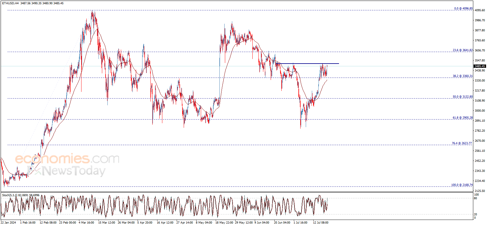 توقعات سعر الإيثريوم 19-07-2024: استأنف سعر الإيثريوم (ETHUSD) تداولاته الإيجابية ليختبر المقاومة المحورية 3505.00$.