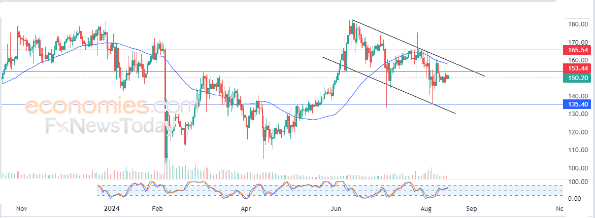 لهذا نحن نتوقع انخفاض سعر العملة خلال تداولاته القادمة، خاصة طيلة استقراره دون مستوى 153.45، ليستهدف مستوى الدعم المحوري 135.40.