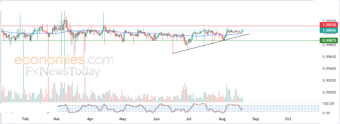 لذلك فتوقعاتنا تشير إلى المزيد من الارتفاع لسعر العملة خلال تداولاته القادمة، ليستهدف مستوى المقاومة المحوري والقريب 1.00120 استعداداً لمهاجمته.