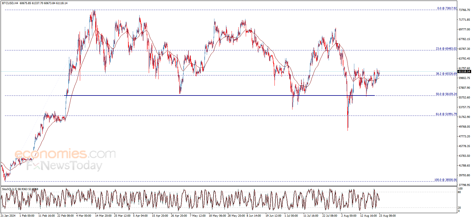 توقع سعر البتكوين اليوم 23-08-2024: يظهر سعر البتكوين (BTCUSD) تداولات إيجابية جديدة ليحاول الابتعاد عن مستوى 60326.70$،