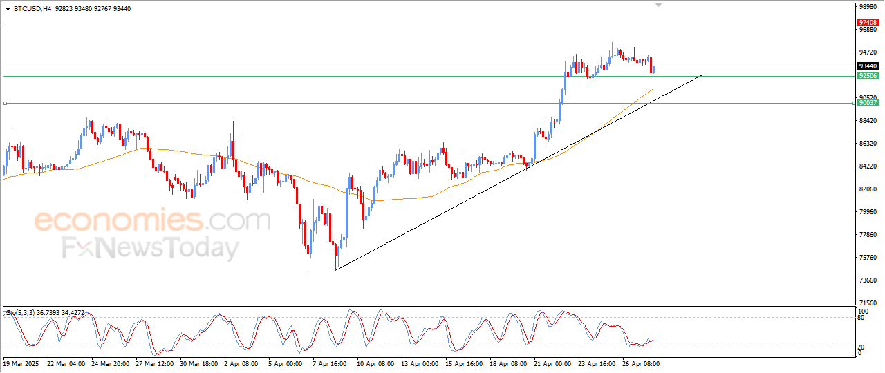 سعر البتكوين (BTCUSD) يحاول اكتساب زخماً إيجابياً – توقعات اليوم – 28-04-2025.
